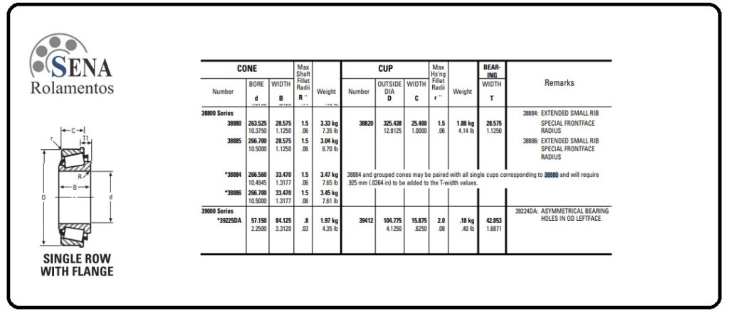 Designação de Rolamento: Rolamentos de Rolos Cônicos 38880/38820